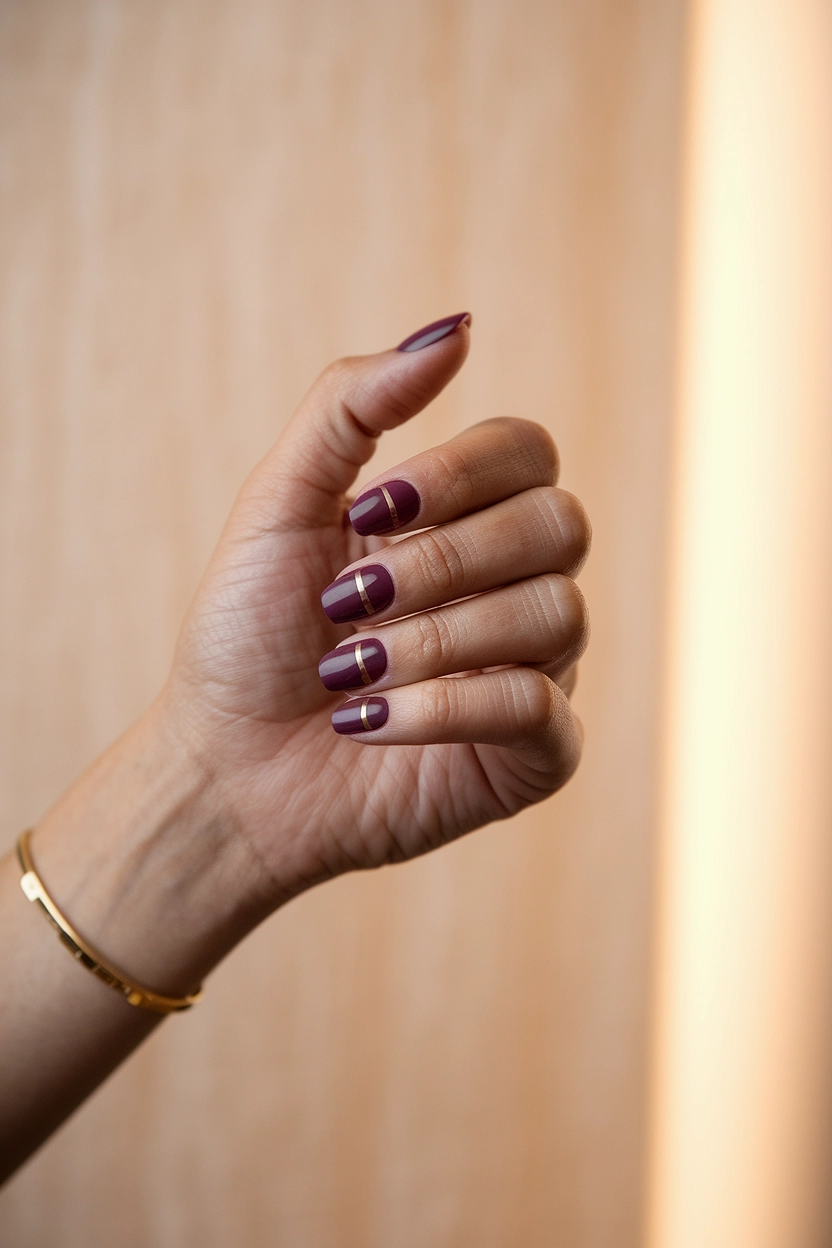 Plum purple nail designs bring depth and drama with their rich, wine-inspired color. This deep, luxurious shade looks beautiful on all skin tones and nail lengths. Plum purple can be the star of the show on its own or enhanced with gold accents for extra elegance.