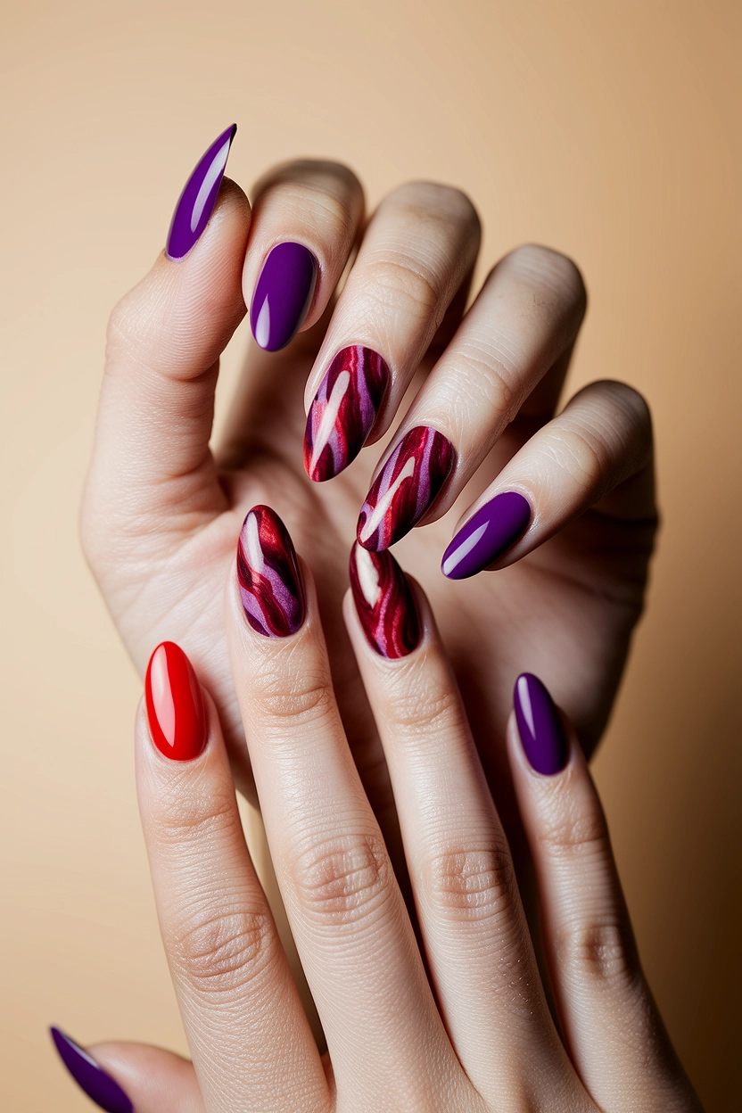 Purple red nails combine the passion of red with the mystery of purple for a fiery, bold look. This rich, wine-inspired shade is perfect for fall and winter or date nights. It has the depth of purple with the intensity of red for a truly head-turning manicure.